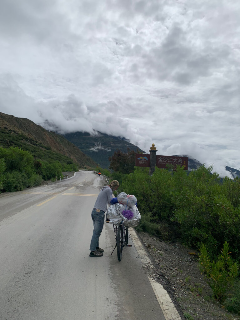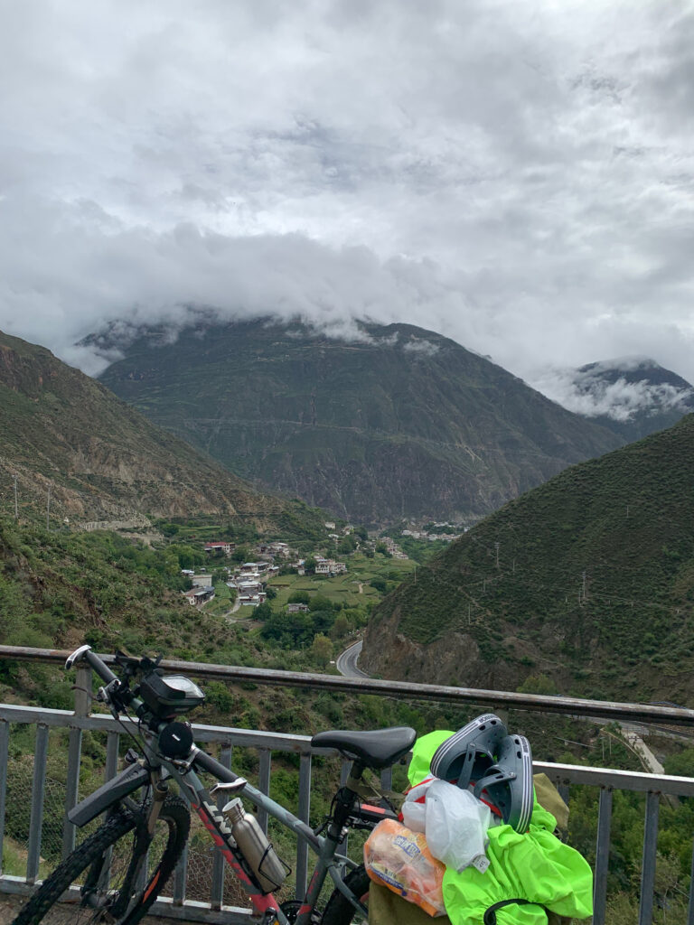 奔子栏在金山江河谷底部,所以一出小镇就是抖上坡。听小沐说他之前全程上坡都是骑行,没有推车,不敢推,怕上瘾,我听了哈哈大笑,推车上瘾的不正是我吗?同时我有点怀疑我的体能和耐力了:为啥骑行青藏线时我几乎不推车?
